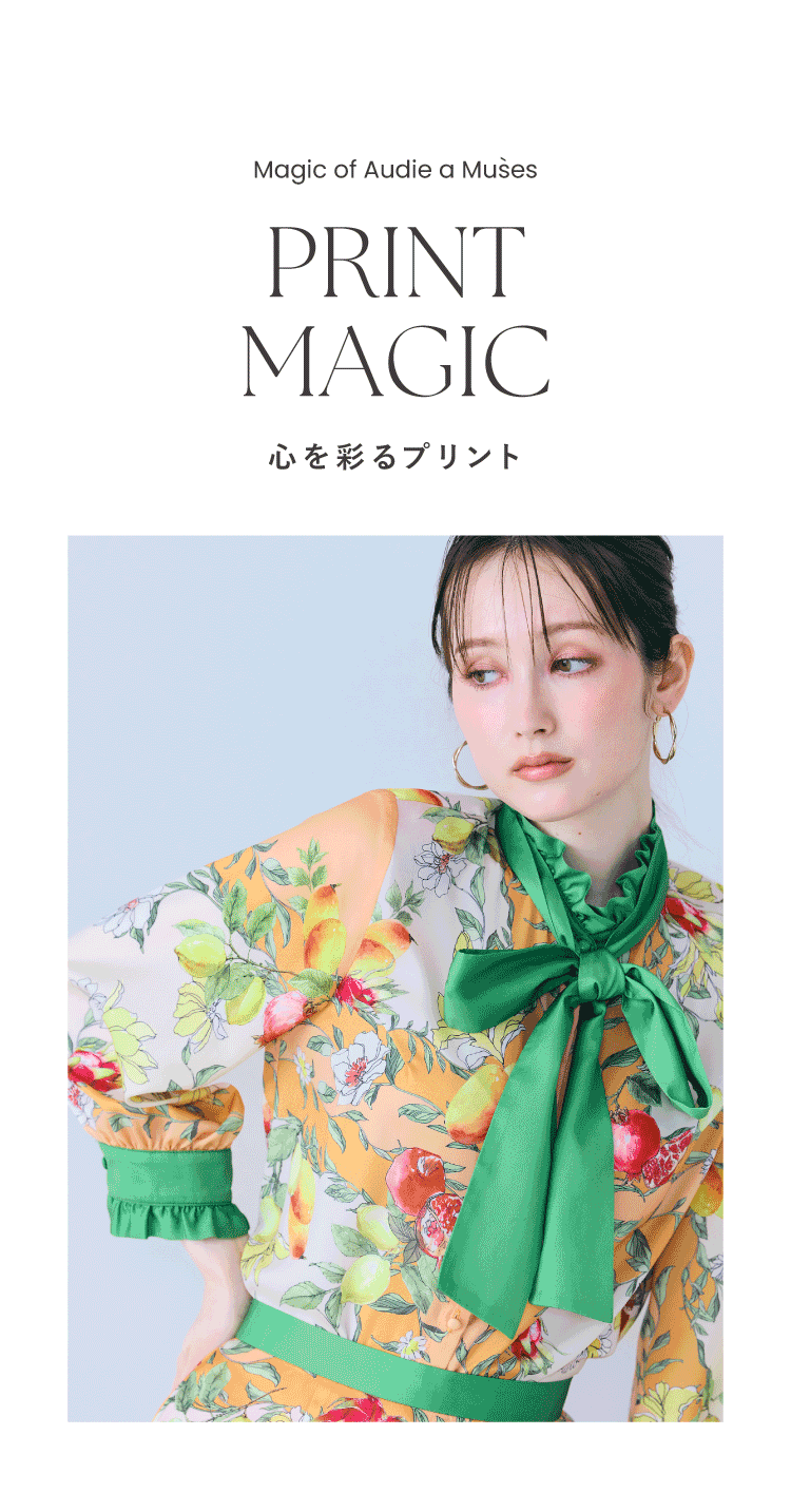 Audie a Musesらしい印象的なプリント。