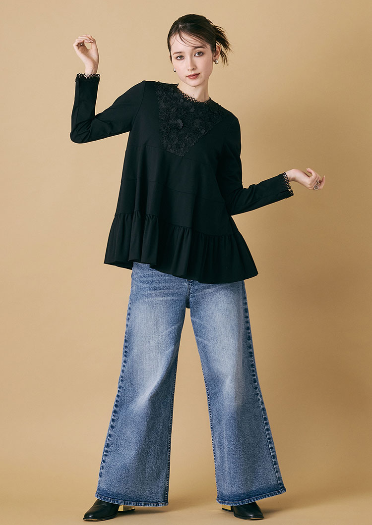 ―王道のデニムスタイルも着映えトップスがあれば今っぽくアップデート!フラワーモチーフやレースの立体感がシンプルな中に光ります。