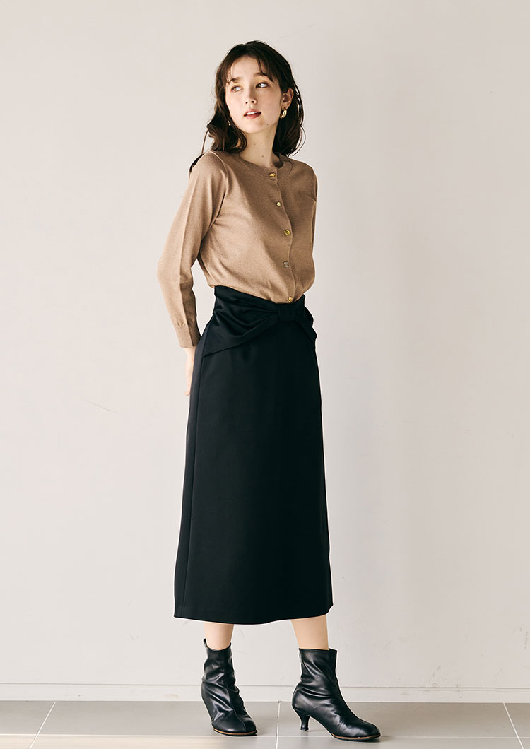 ―ちょっと大人になりたい日はタイトスカートで。ミニマルなカーディガンを合わせればカフェにいそうなお洒落なお姉さんコーデの完成!