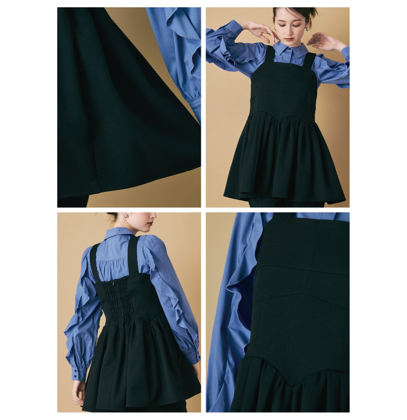 全面プリントは少し勇気がいる…という方は、サロペットやジャンスカ、ジレとレイヤードするのがおすすめです◎