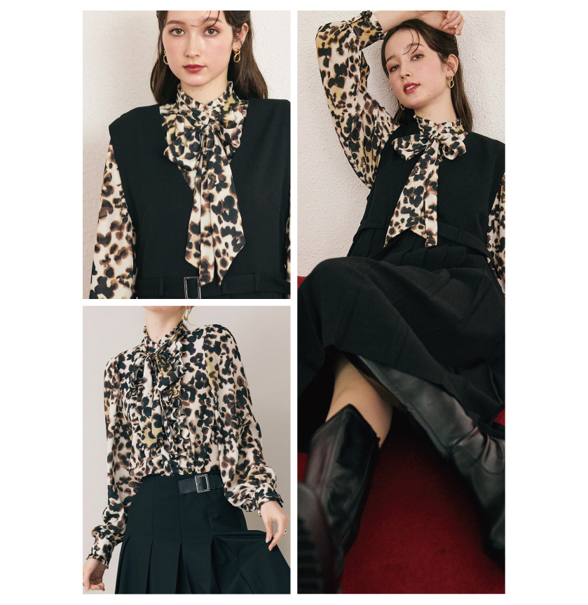 トレンドのヒョウ柄を今っぽくフェミニンに取り入れられる1枚です。