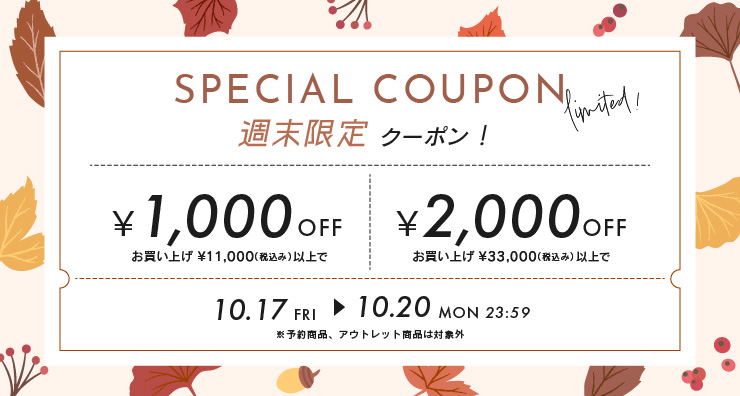 ▼オンラインショップで使える、週末限定クーポン配布中!