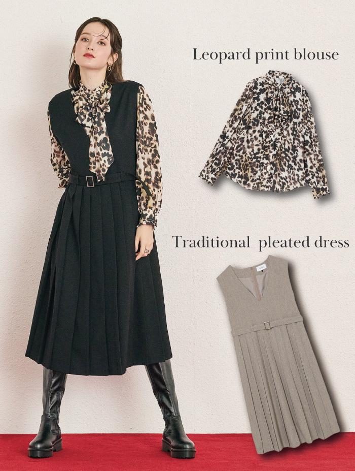 ヒョウ柄が映える、少し辛めなスタイリング。