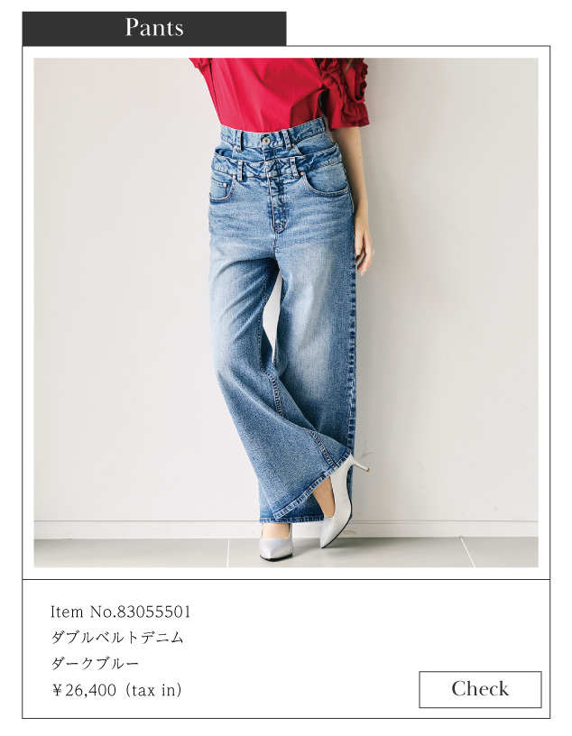 ウエストのダブルデザインがポイントのデニムはオールシーズン着られる優秀アイテム。