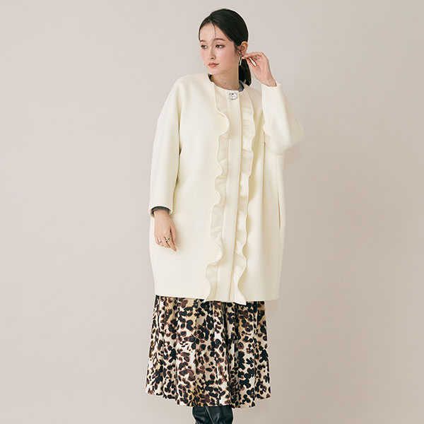 膝丈のバランスが今っぽく、ロングブーツ合わせも好相性。