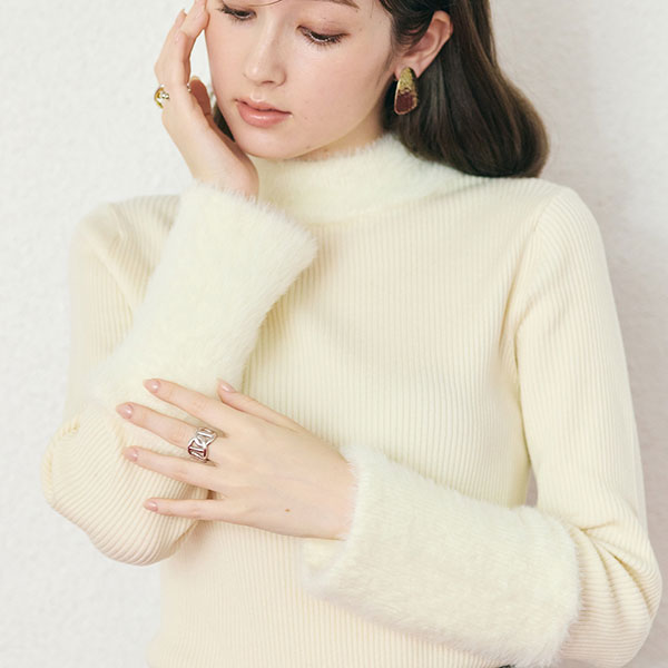 首元と袖のシャギーがニュアンスを生み出す。