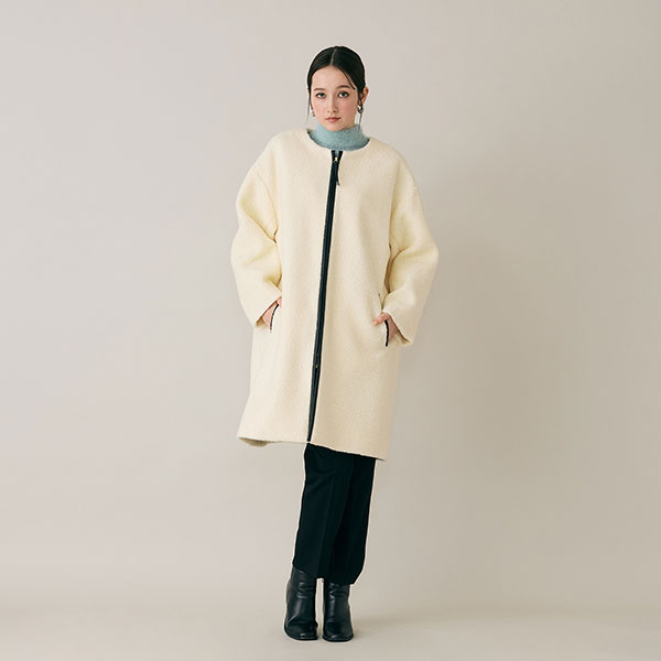 黒ラインのアクセントが効いたボアは、白コートの難しさを軽減。