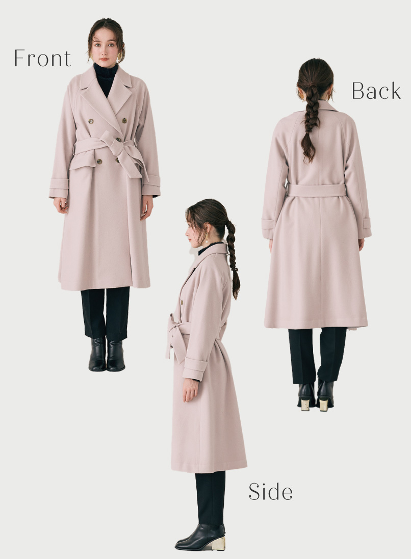 肩幅や袖はジャストなサイズ感で、きれいめに着られるコートです。