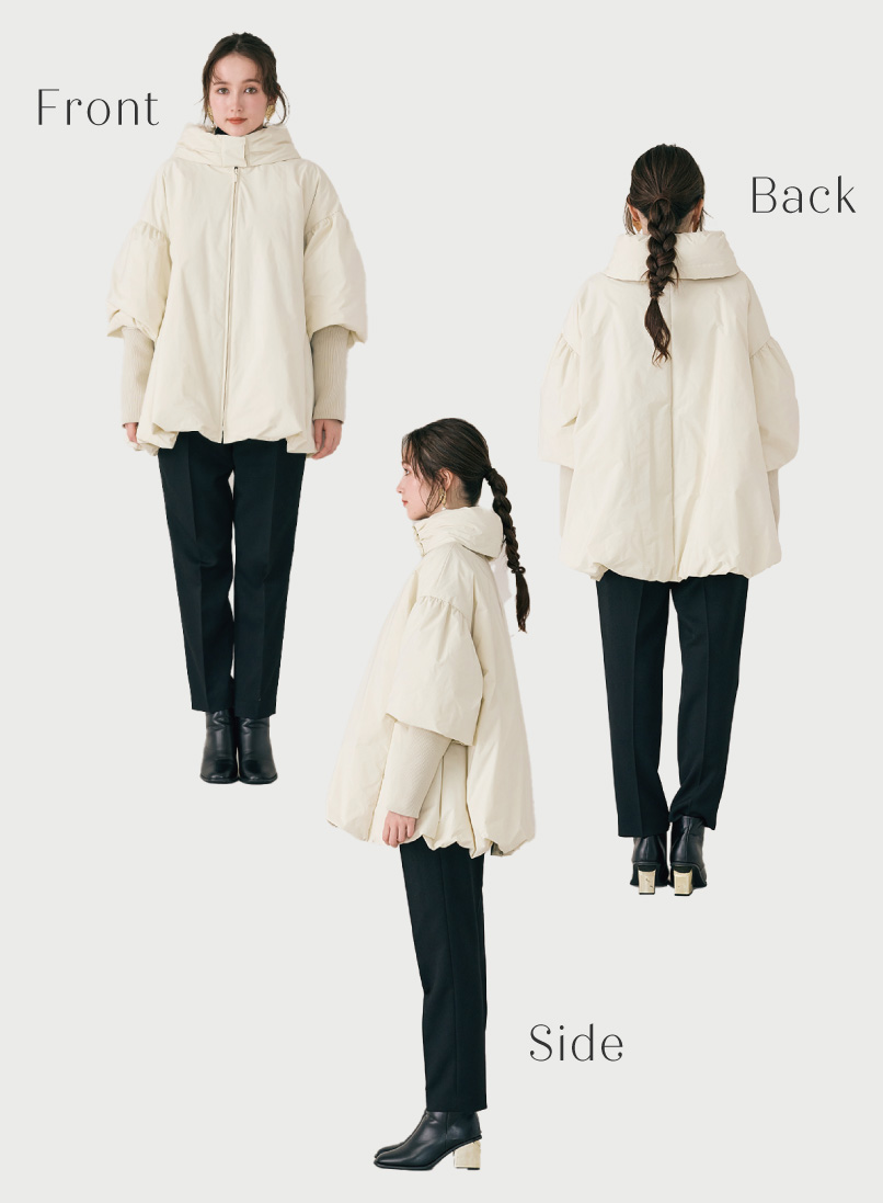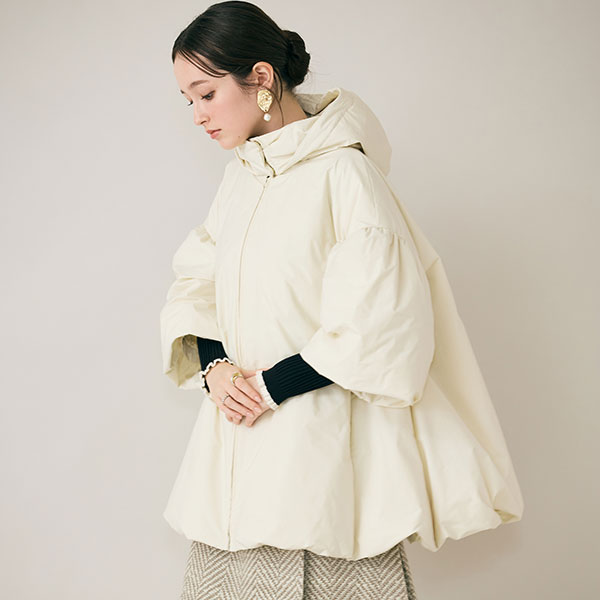 気になるヒップまわりだけ少しふっくらとコクーンシルエットにしているため、必要以上に着ぶくれして見える心配もなし!