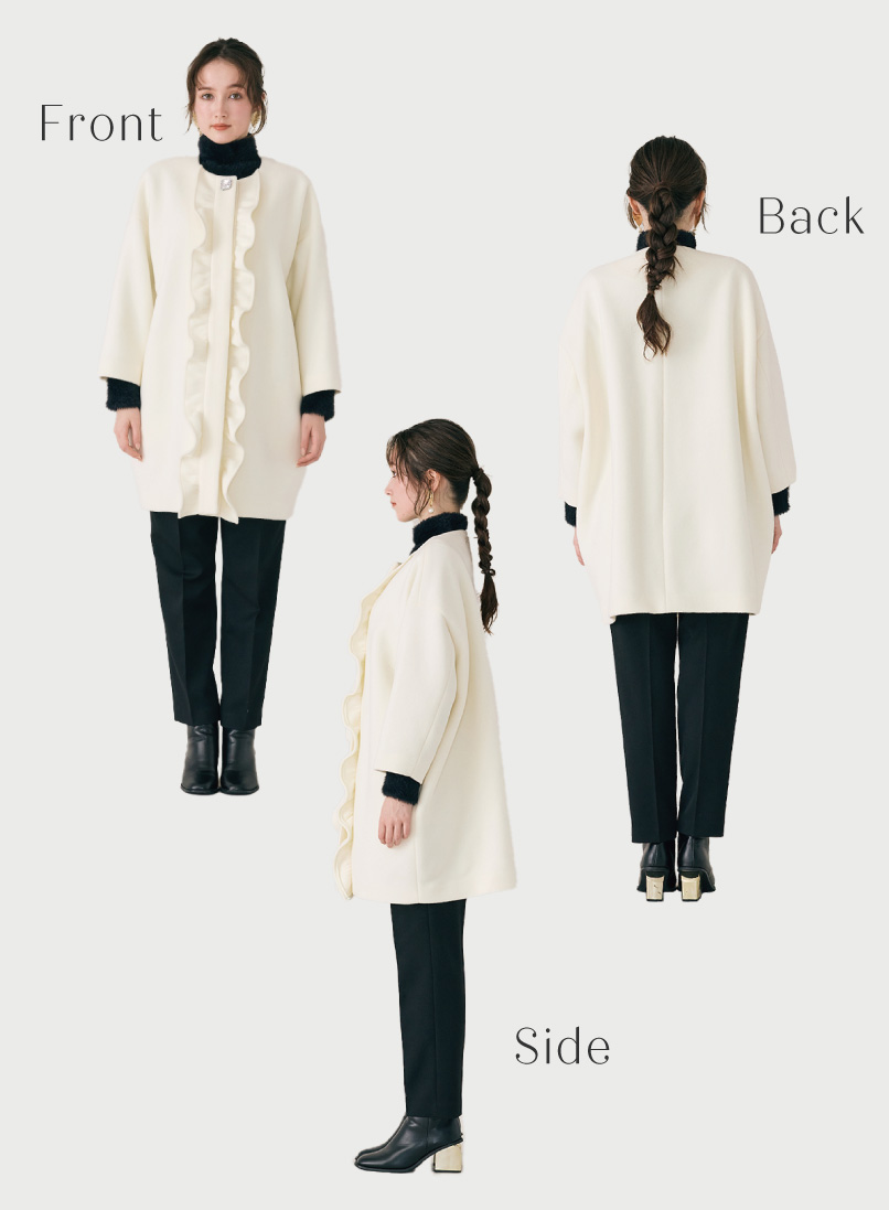 存在感たっぷりなフロントのフリルは縦のラインを強調。