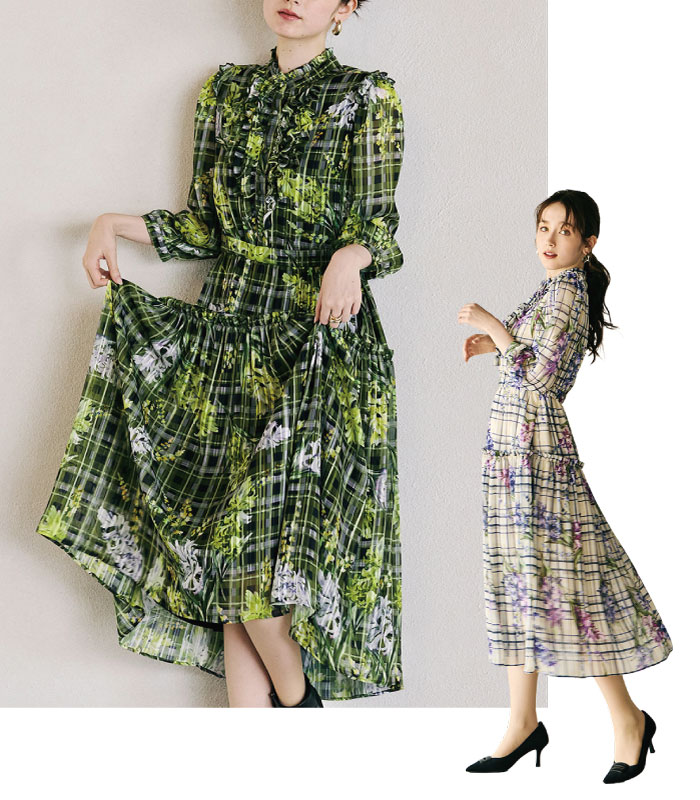 今年一番人気だったといっても過言ではないツィードプリントワンピース。