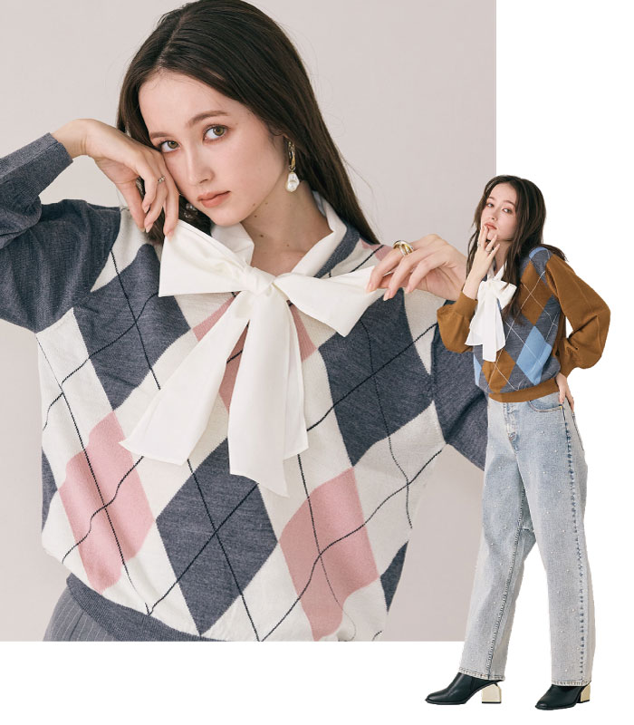 王道のアーガイルニットを今っぽくアップデートした1着です。