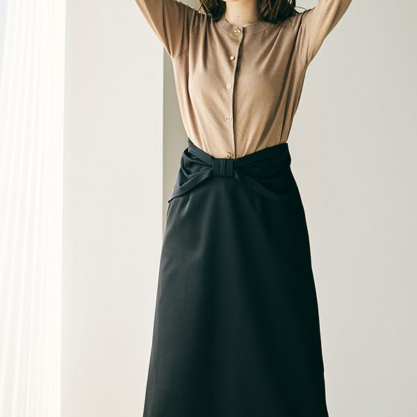 大きなリボンがウエストをきゅっと絞ってくれ華奢見えが叶うスカート。