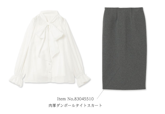 タイトスカートを合わせれば華やかさときちんと見えを兼ね備えたコーデに。