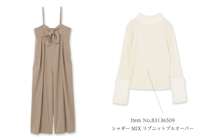 シンプルながらも遊び心を効かせたシャギー切替のリブニットをイン。