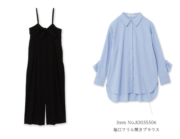 すっきりとしたリボン合わせなら上下ともに持ってきても派手になりすぎず、反対に統一感も出せちゃいます◎