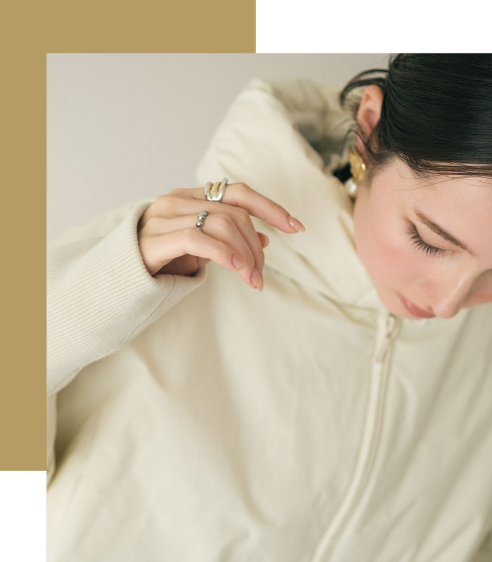 収納可能なフードや取り外し可能なリブ袖など、着回しの幅が広がる1着。