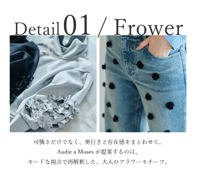 Audie a Musesがこの春提案するのは、フラワー、リボン、フリルといった立体ディテールをモードな視点で昇華した、大人のための新作コレクション。
