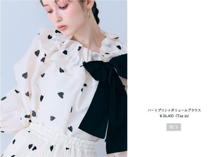 立体的なタックが印象的なハートプリントブラウス。パンツと合わせてすっきりとしたシルエットにまとめれば、甘さを抑えた大人のモードな着こなしが完成します。ブラックカラーも相まって、普段は辛口派な方にも取り入れやすいスタイルに。甘×辛の絶妙バランスはいつでもぐっとこなれて見せてくれる鉄板ルール。