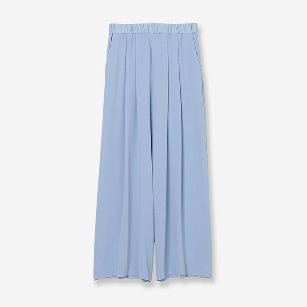 リラクシーで綺麗見えが叶うとろみ素材や楽に履けるウエストゴムのイージーな仕様、タックの入ったワイド型シルエット。