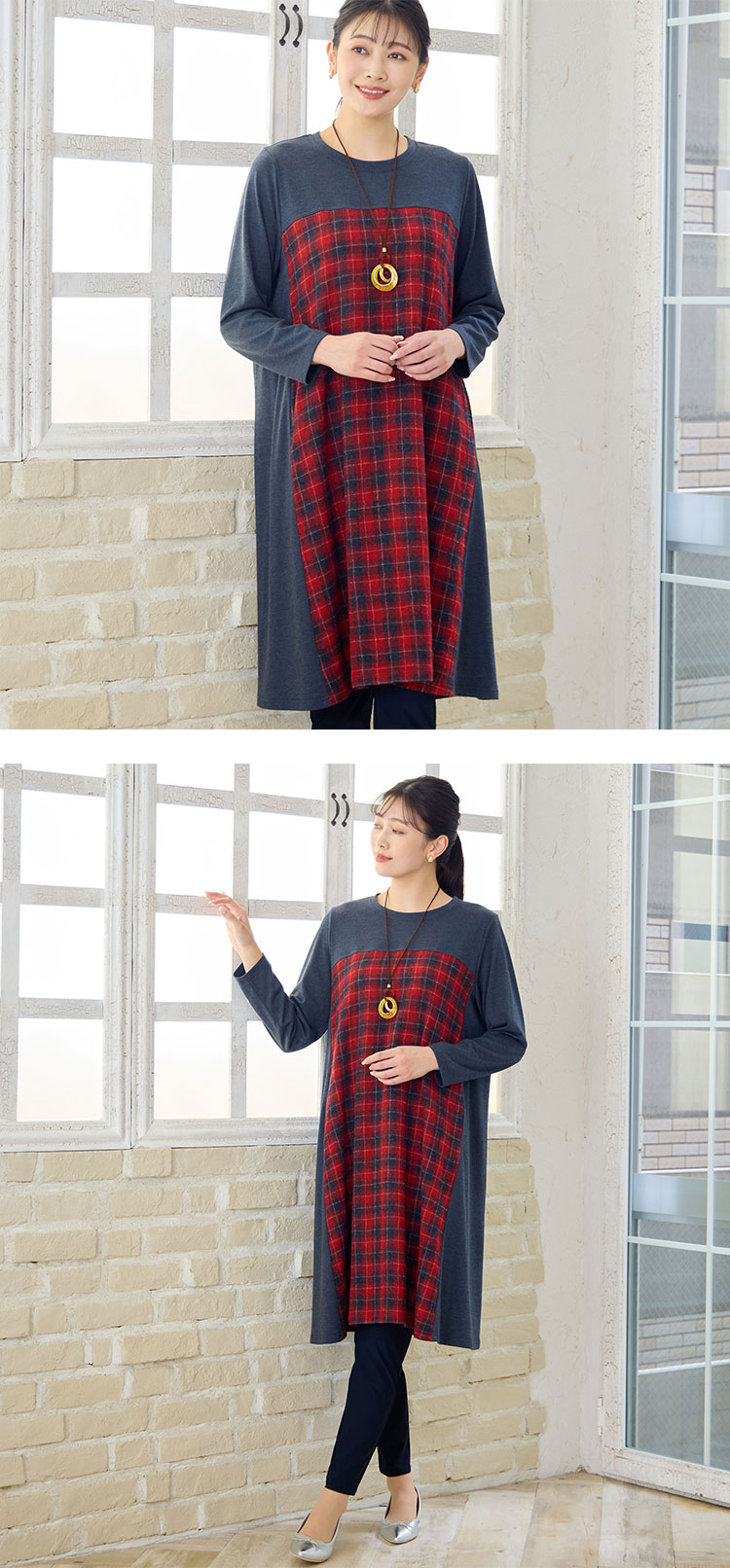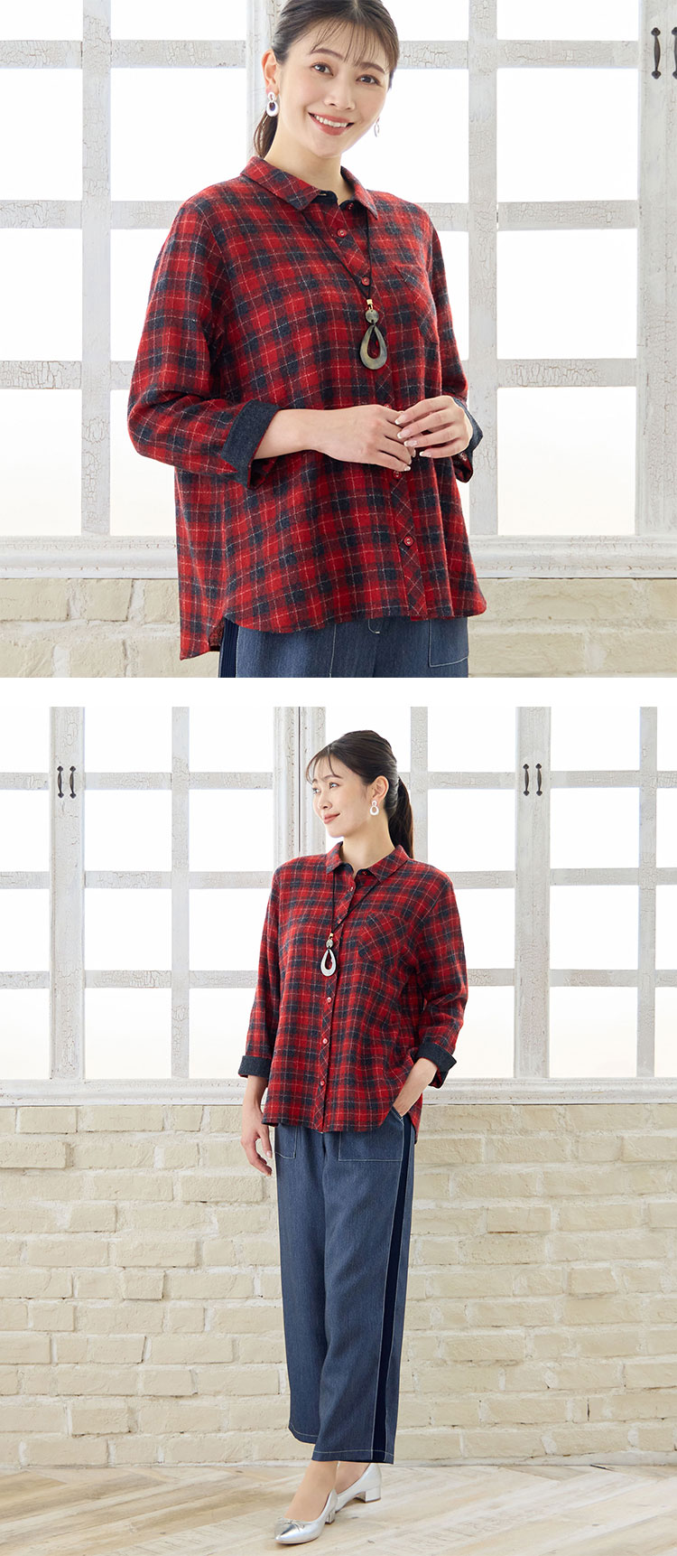 【ミゼール】上質な温もりが心地よい、ウールチェックのシャツ&ワンピース