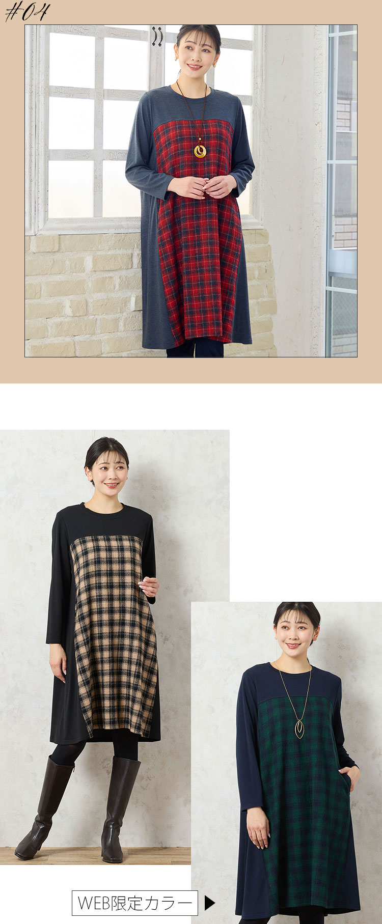 #04 ウール100%の上質なチェックを楽しむカジュアルワンピ