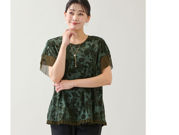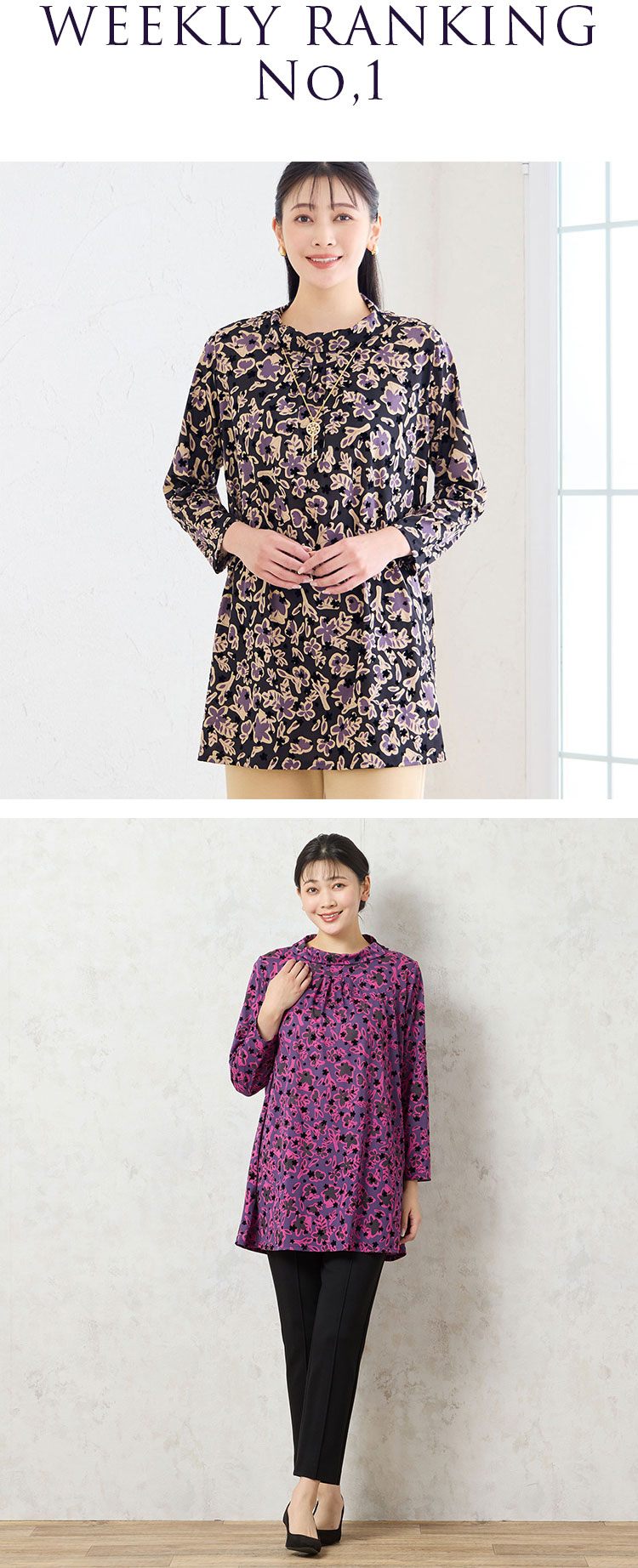 軽くて今すぐ着られるチュール素材のチュニックが人気No.1!深みのある色合いの花柄が上品で着映えします。