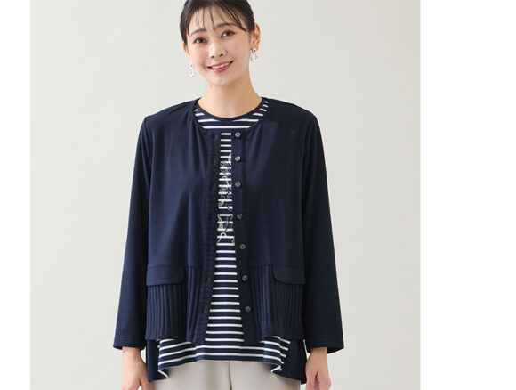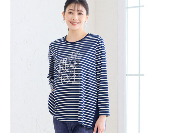 着まわし力抜群のカットソーが人気No.2!ボーダー組織をV字で接ぎ合わせたスッキリ見えるデザインが魅力です。