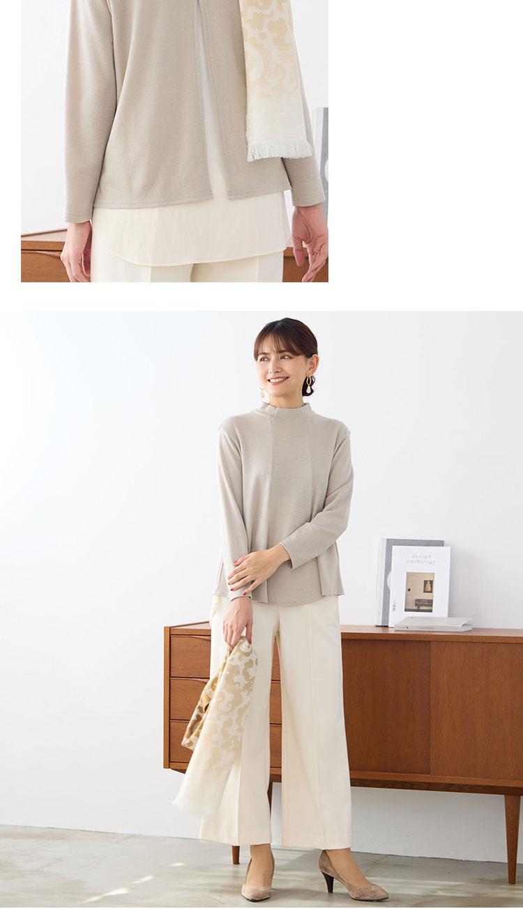 後ろはスリットをいれ、布帛を重ねたレイヤード風のデザインとなっております。