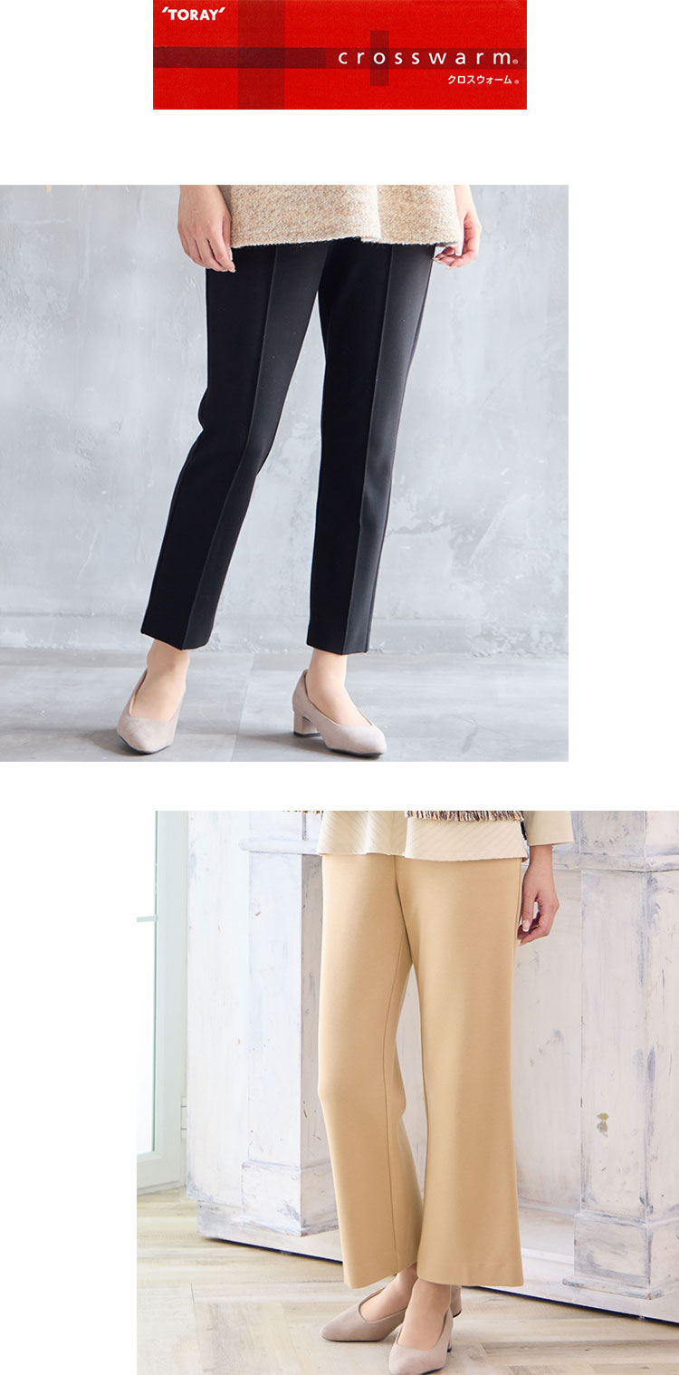 毎年人気の機能性素材「クロスウォーム」を使用したパンツは秋冬に欠かせないアイテム。今年はすっきり穿けるストレートとリラックス感のあるワイドの2型をご用意しました。