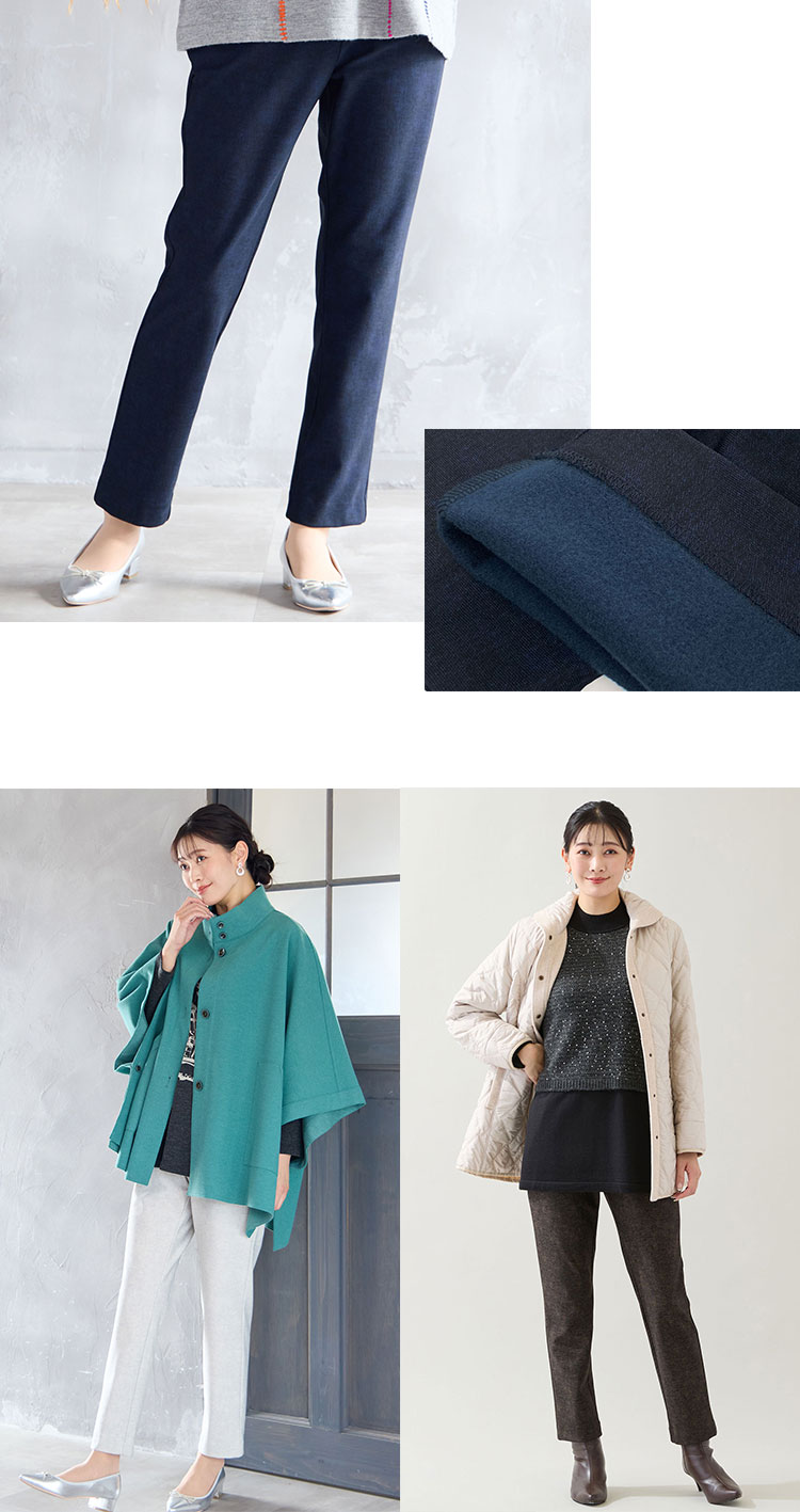 冷えがちな足元を優しく包む快適ボトムが揃っています。ぜひご覧ください。