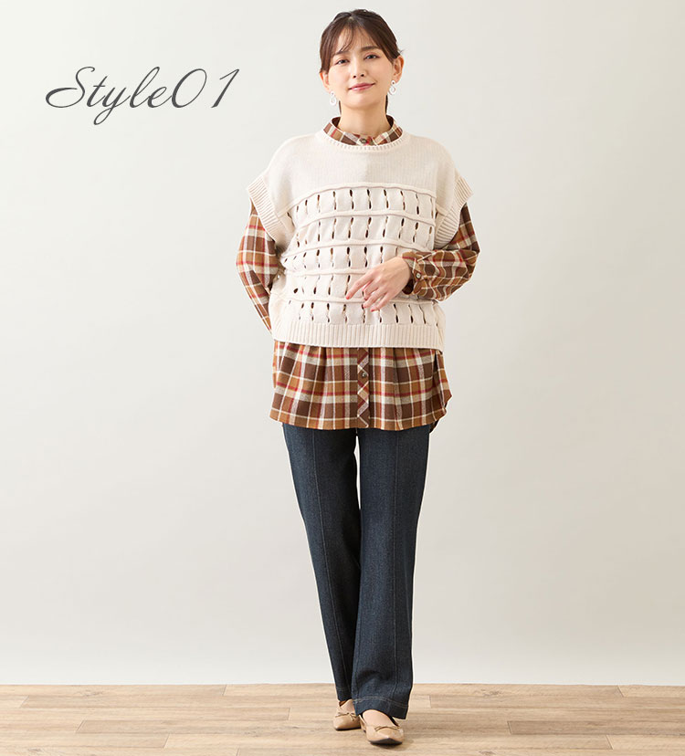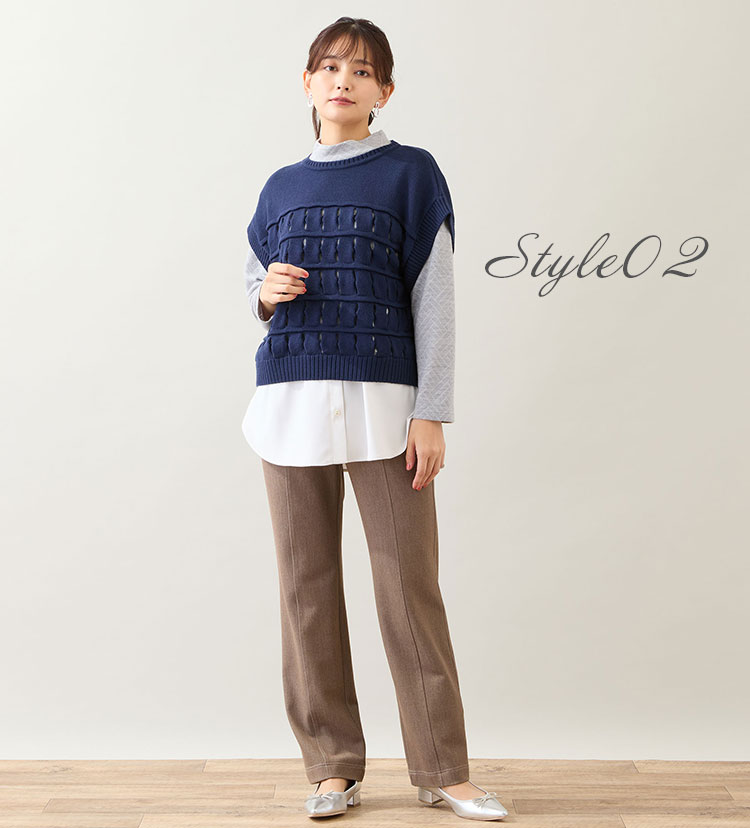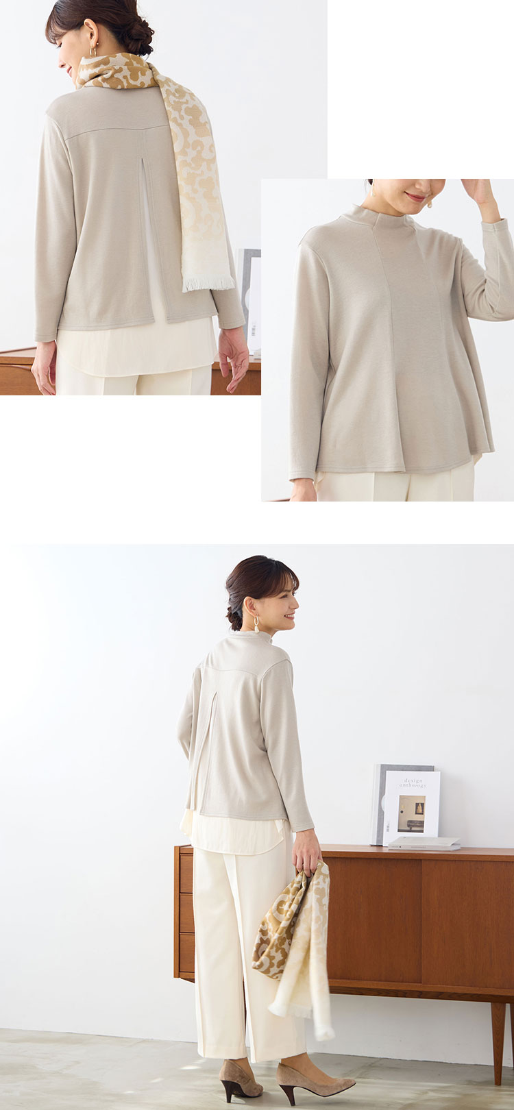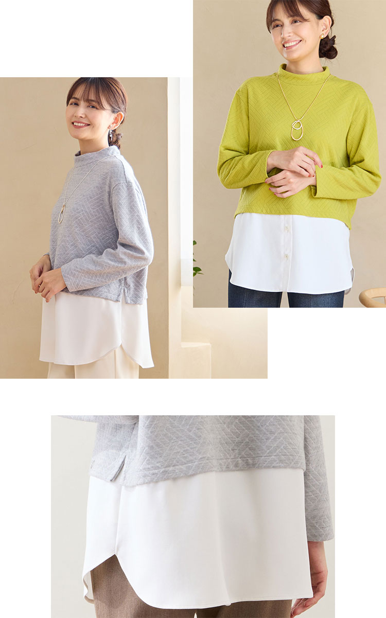 カットソーやプルオーバーとのレイヤードもお楽しみいただけます。