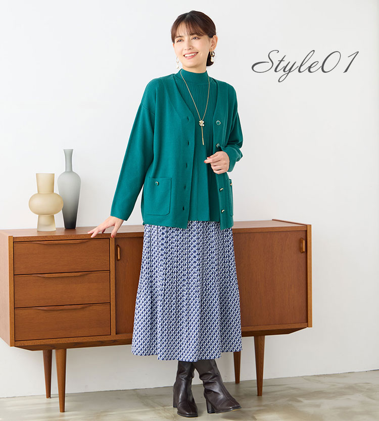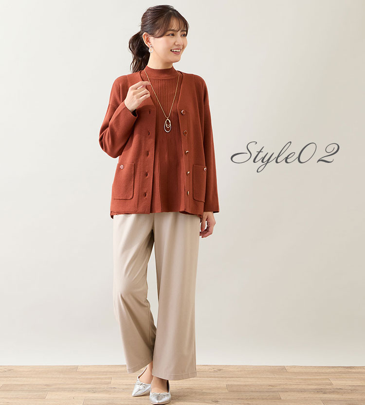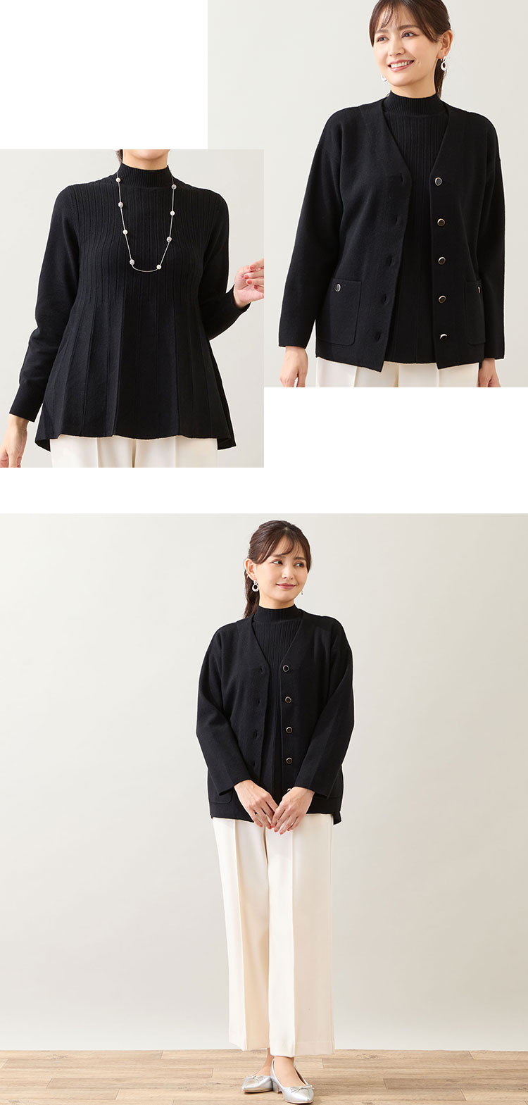 ふっくらと肌心地のいいニットシリーズから、カーディガンとセーターのアンサンブルスタイルをご紹介!単品でも着まわし力は抜群です。