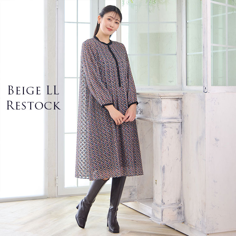 ゆったり着られる人気のワンピース。ベージュのLLサイズが再入荷しております。秋のお出かけにピッタリの上品見えする一枚です♡