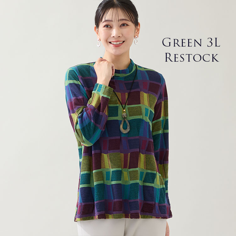 上質感漂う国産ジャカードのカットソーも人気アイテム。完売していたグリーンの3Lサイズが再入荷しております。