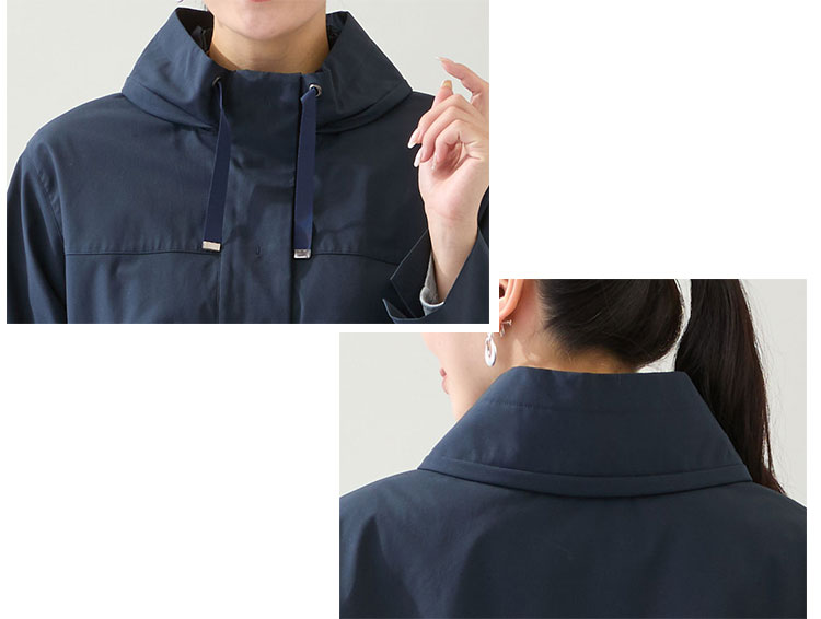 表地は防風加工をしたストレッチタフタを使用。冷たい風を通さず、暖かい空気を逃がしません。