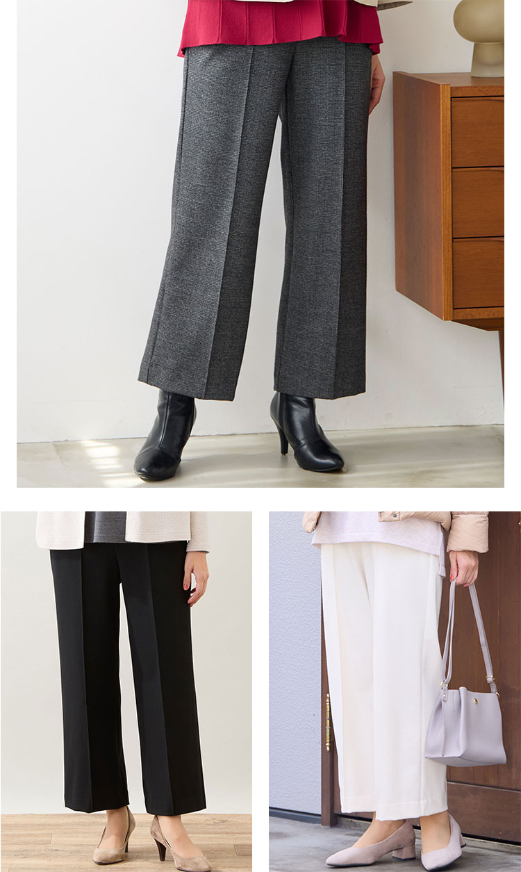 両面起毛した暖か素材のワイドパンツが第2位にランクイン。足の形をカバーし、ピンタックで美脚が叶う一押しボトムです。