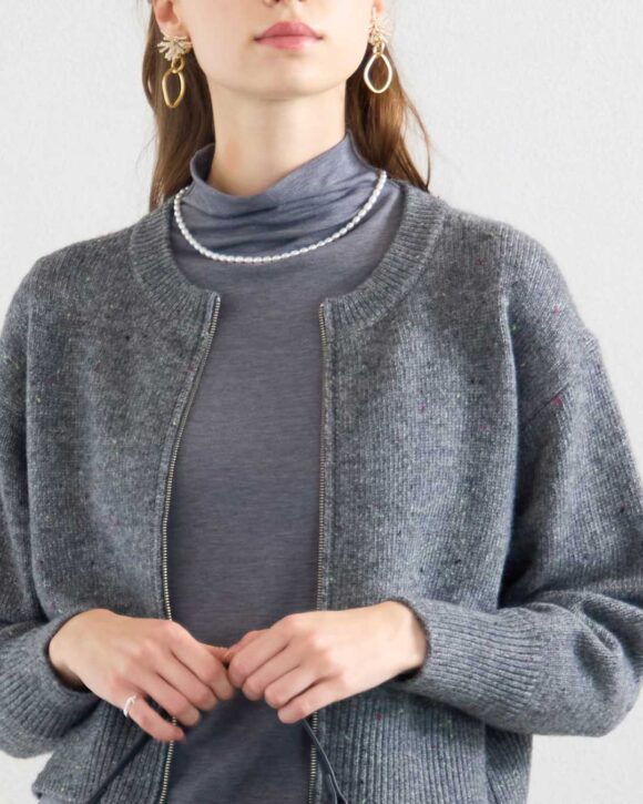 あたたかなニットでありながらステッチワークが効いてジャケットのような見え感できちんと感アップ。