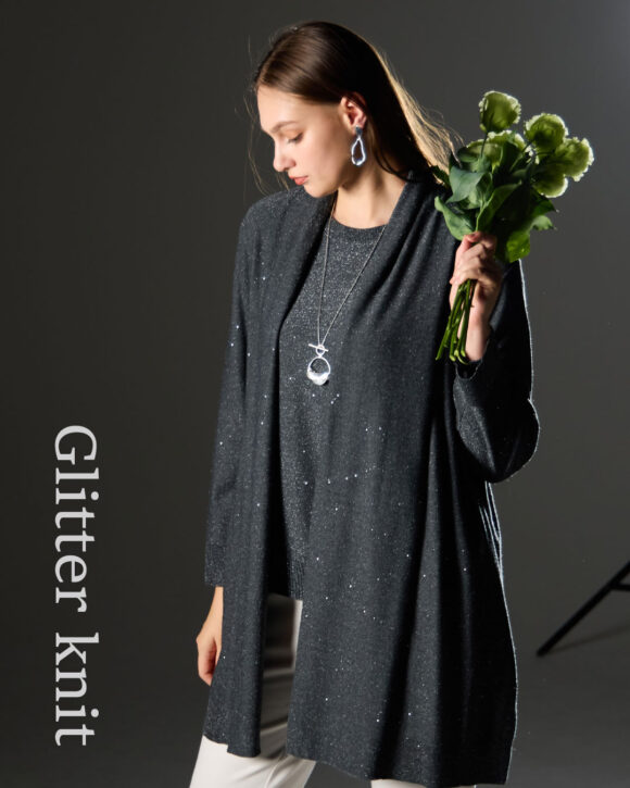 【L~4L/アンサンブル対応】スパンコール着流しカーディガン