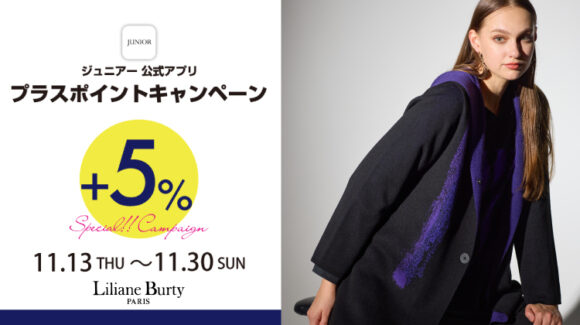 期間中、JUNIORアプリメンバーズのお客様は、JUNIORメンバーズ対象ショップにて