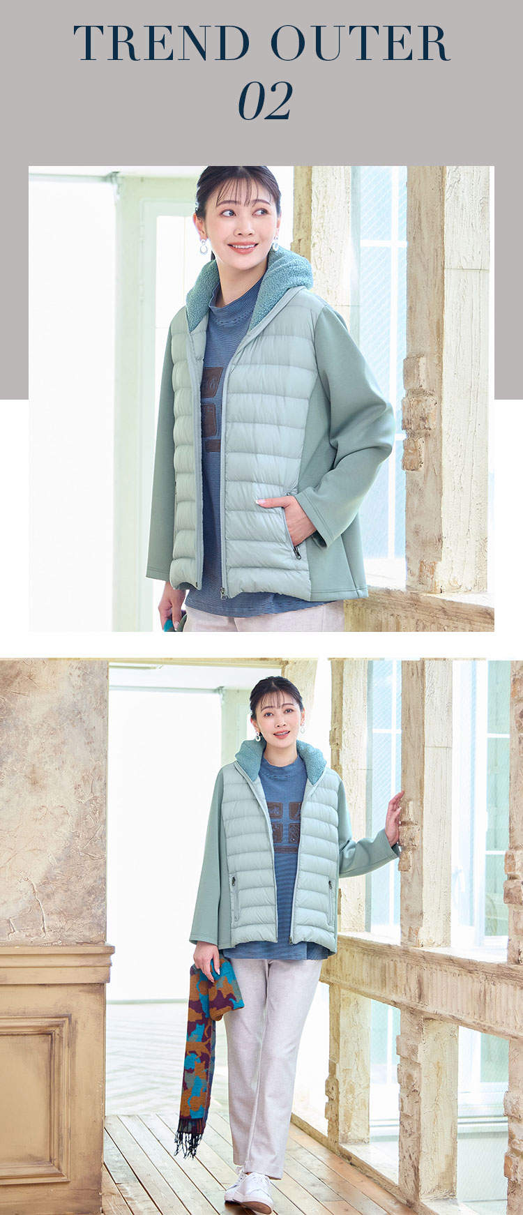 裾や袖口のギャザーリングで甘さもあり、カジュアル過ぎない新感覚のアウターです。
