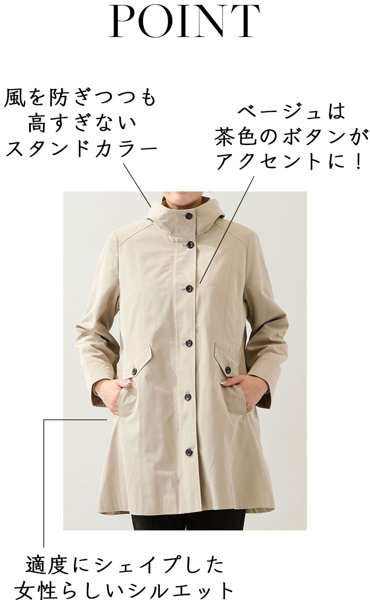 女性らしいシルエットと、春まで着られる機能性を兼ね備えた一枚です。