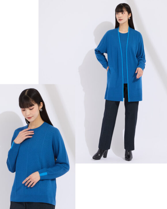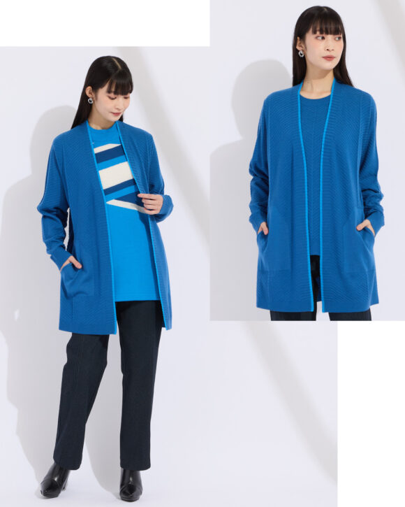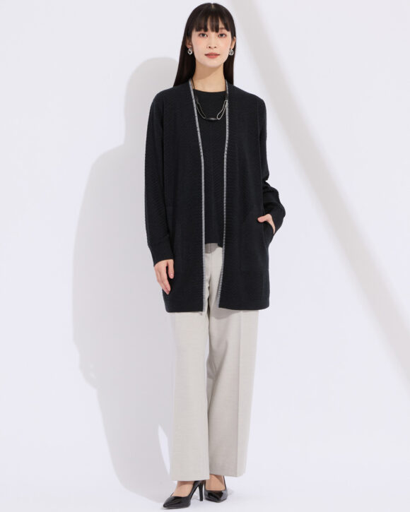 カーディガンは着脱がしやすいので室温に合わせてさっと着られるから便利。