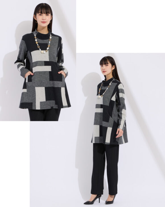 ジャカードブロックの両面起毛カットソーは洗える上、あたたか。