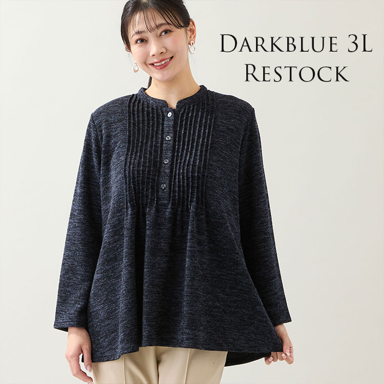 人気急上昇中なのがこちらのカットソー!裏起毛をしたふんわり暖かい着心地が魅力です。ダークブルーの3Lサイズが再入荷しております。