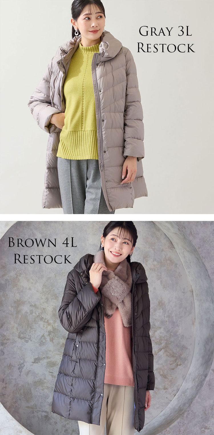 何度も再入荷を繰り返す大ヒットアウターがこちら!グレーの3Lサイズと、ブラウンの4Lサイズが再入荷しました。軽くて保温性抜群の冬に頼れるアウターです。サイズがなくなる前に是非ゲットしてくださいね。