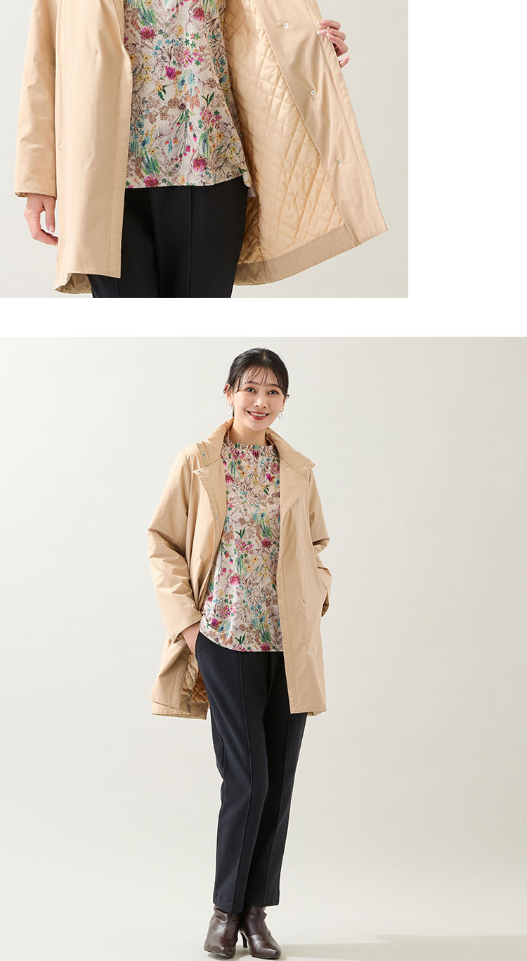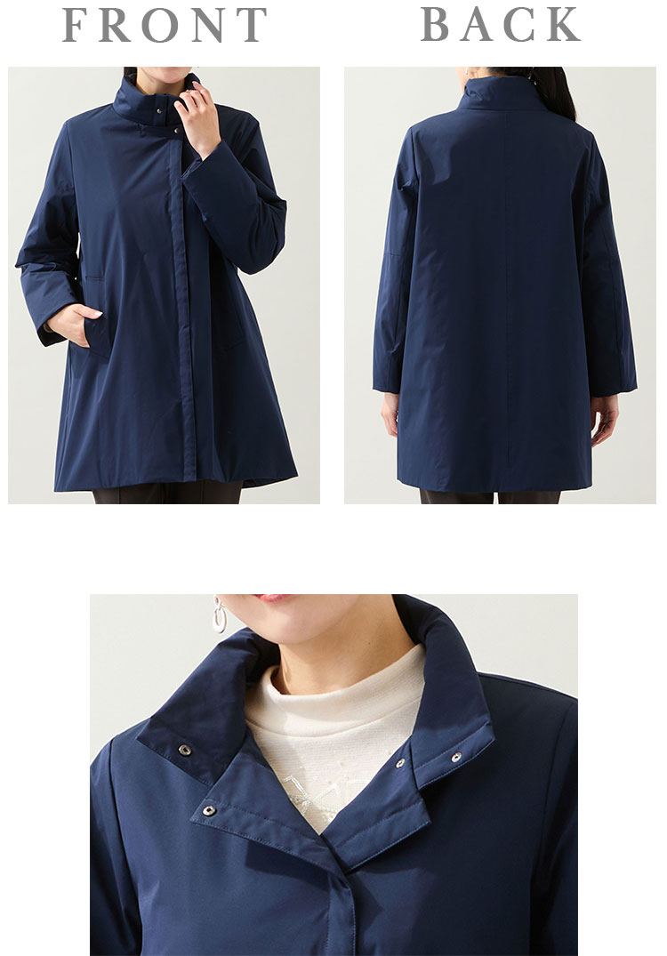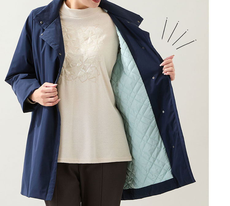 防風加工をした軽量タフタを使ったコートがこちら。冷たい風を防ぎ暖かい空気を逃しません。