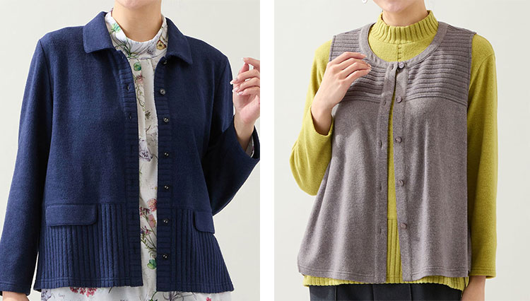 カットソーとアンサンブルになるカーディガンやベストも人気です♪