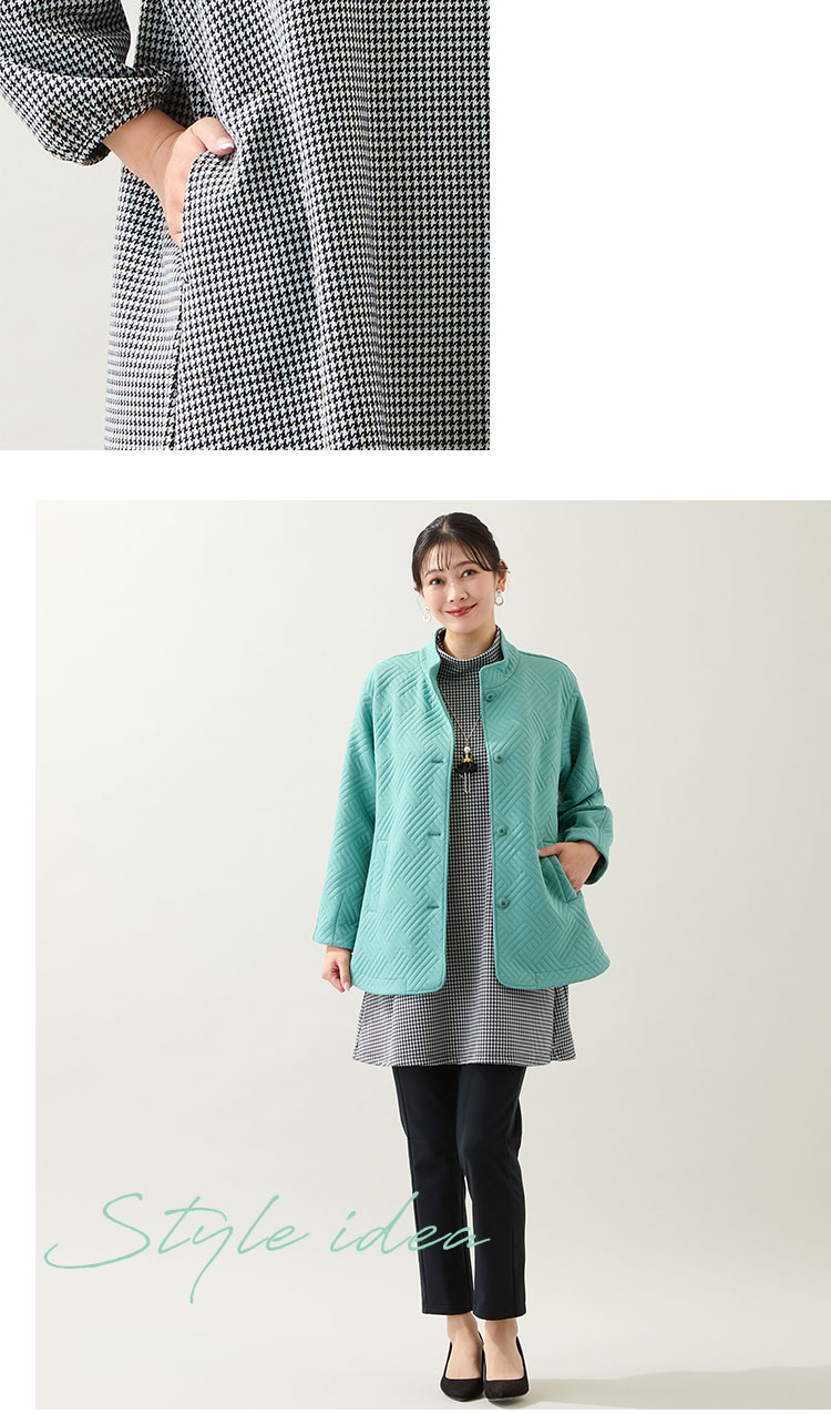 裏面を微起毛し、暖かさと肌当たりの柔らかさを表現した千鳥柄ジャカードを使用。国産素材ならではの繊細な柄が上品なシリーズです。