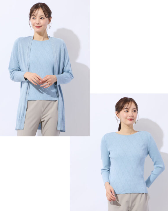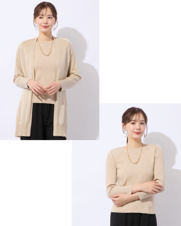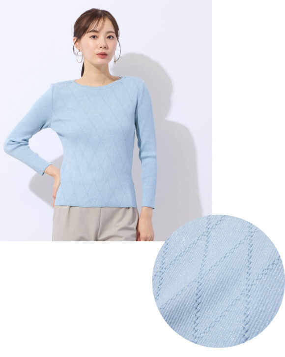 ハイゲージできれいな表面感にラメをプラスすることで上品でエレガンスに仕上がっています。
